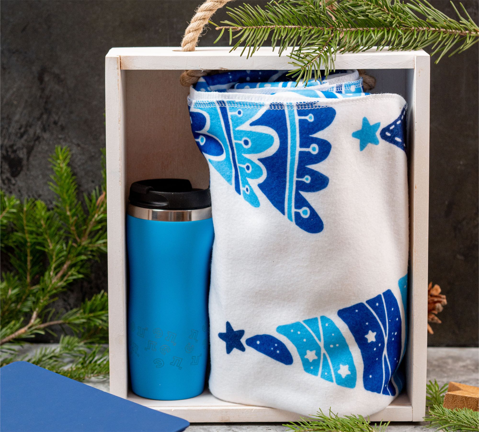 - Деревянный короб с веревочной ручкой;